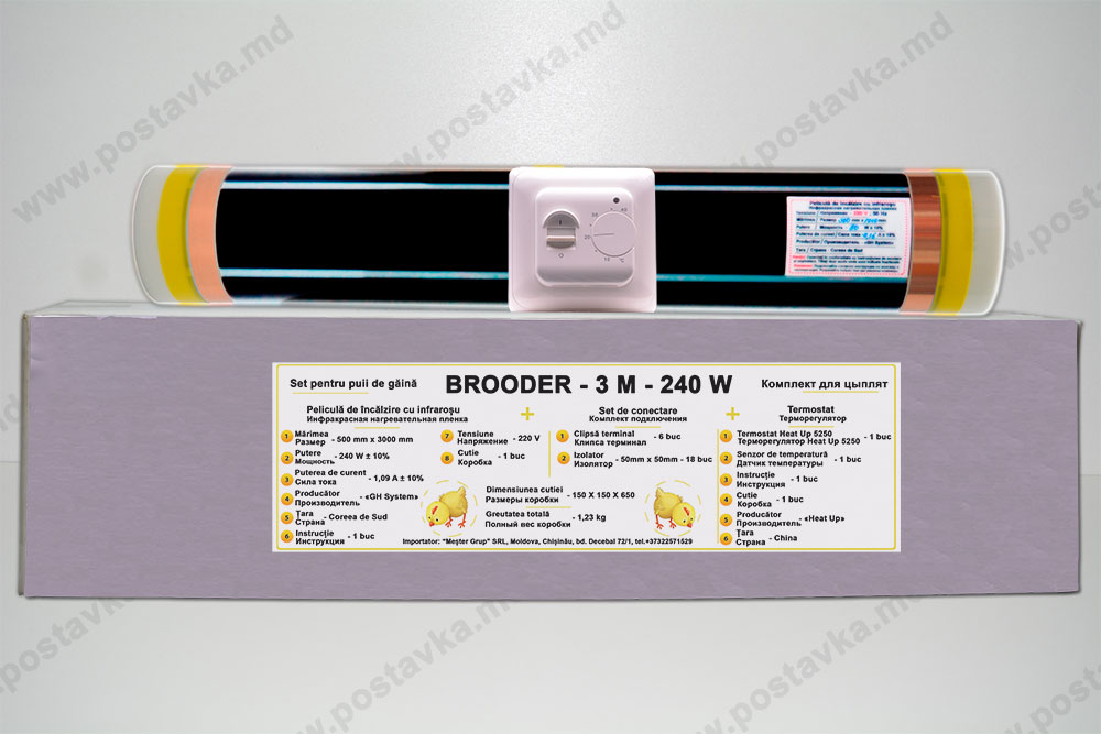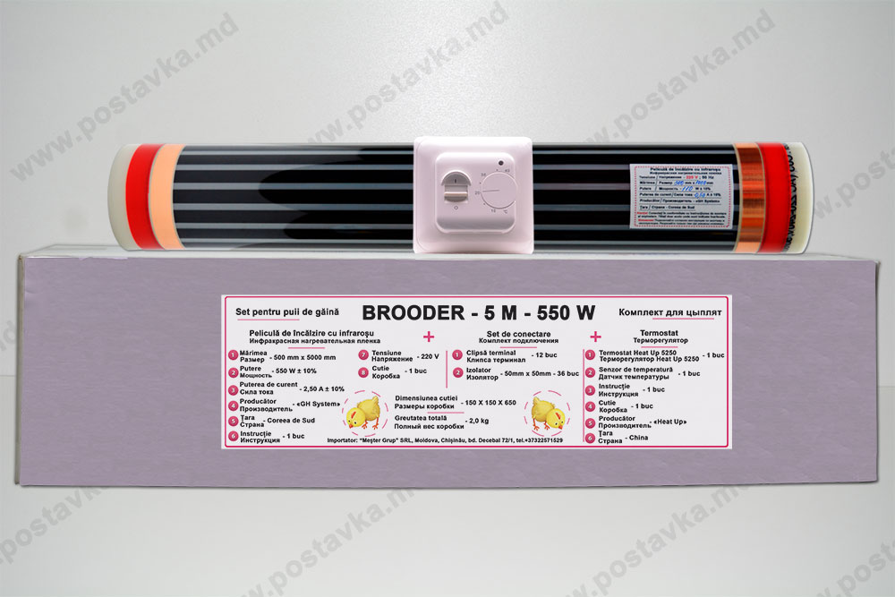 Термопленка располагается внутри брудера на всех плоскостях, датчик температуры обязательно должен находится под нагревательной термопленкой и контролировать температуру поверхности. Лучшее решение в том случае если вы планируете эксплуатировать брудер в неотапливаемых помещениях.