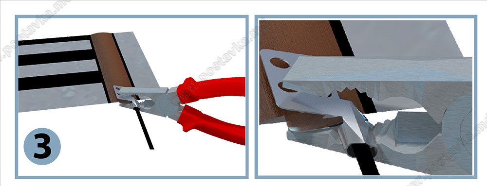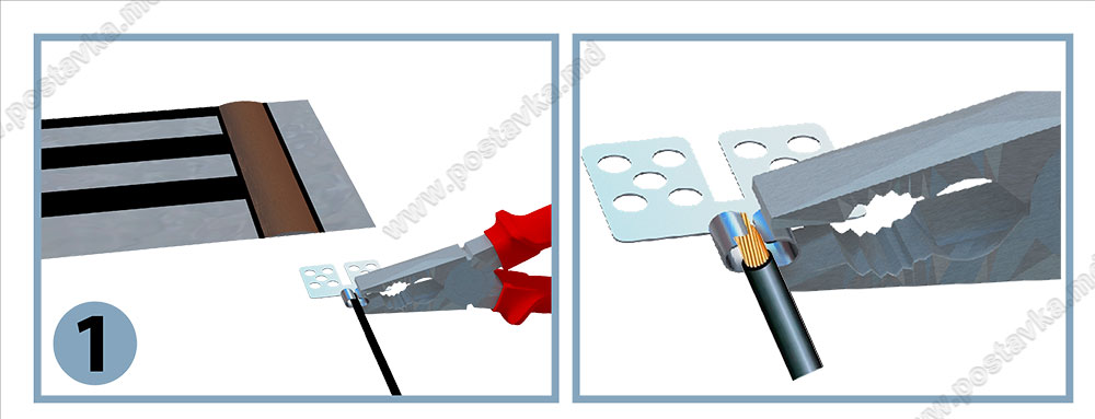 Рис. 3 - Хорошо плоскогубцами сожмите клемму. Благодаря специальному устройству клеммы контакт с токоведущей шиной будет в 15 местах.