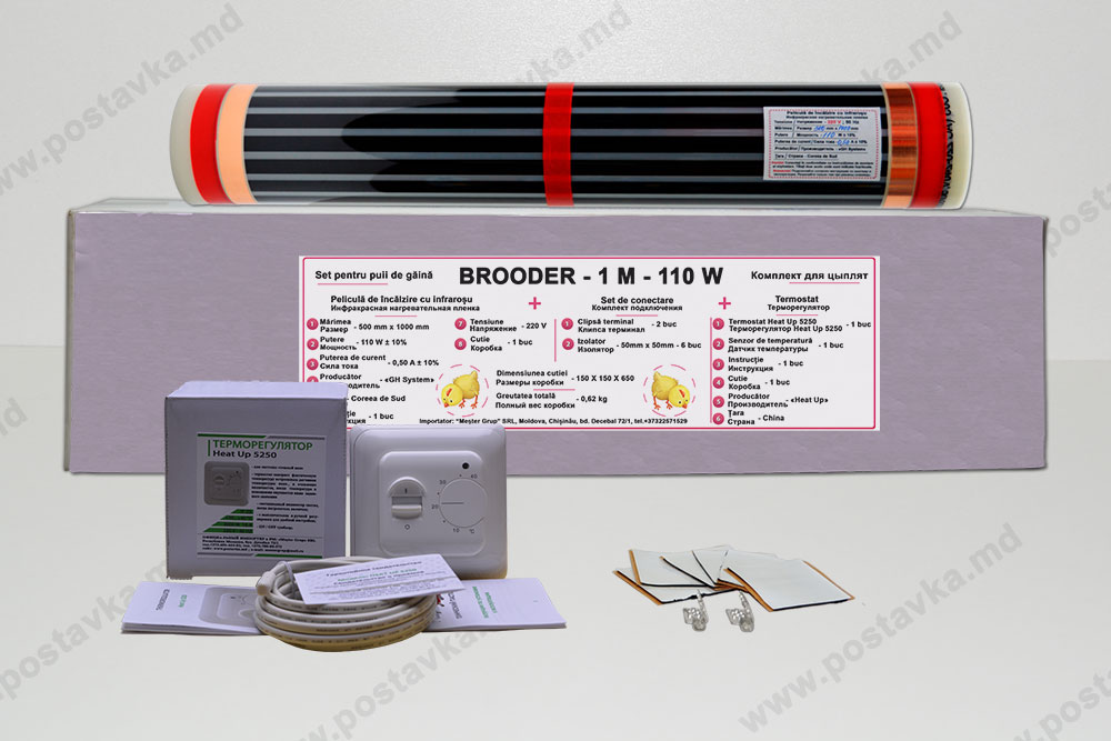 Комплект "Brooder 1 M 110 W" предназначен для обогрева брудера.