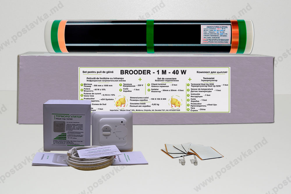 Комплект "Brooder 1 M 40 W" предназначен для обогрева только хорошо утепленного брудера в отапливаемом помещении.