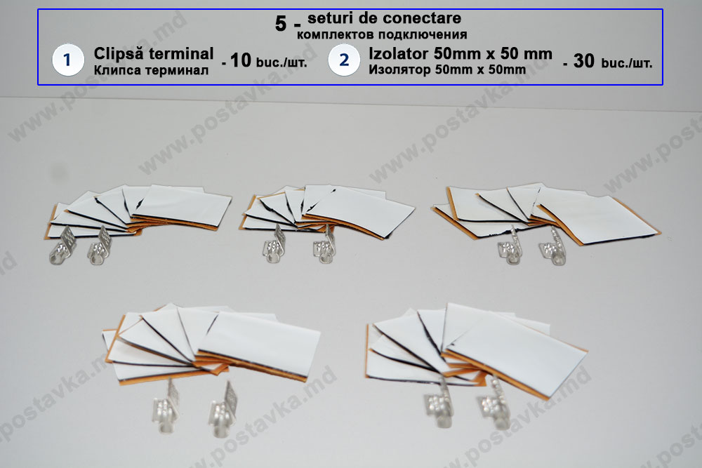 Один монтажный комплект расчитан на подключение одной полосы термопленки. В состав одного монтажного комплекта входят: