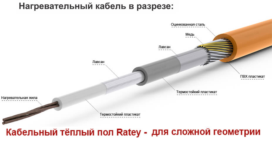 Устройство нагревательного кабеля Ратей: